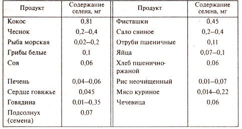 Следует отметить чрезвычайно важную роль селена в антиоксидантной защите организма от свободных радикалов. Довольно значительное количество селена содержится в таких доступных для всех продуктах, как сало и чеснок (табл. 4).